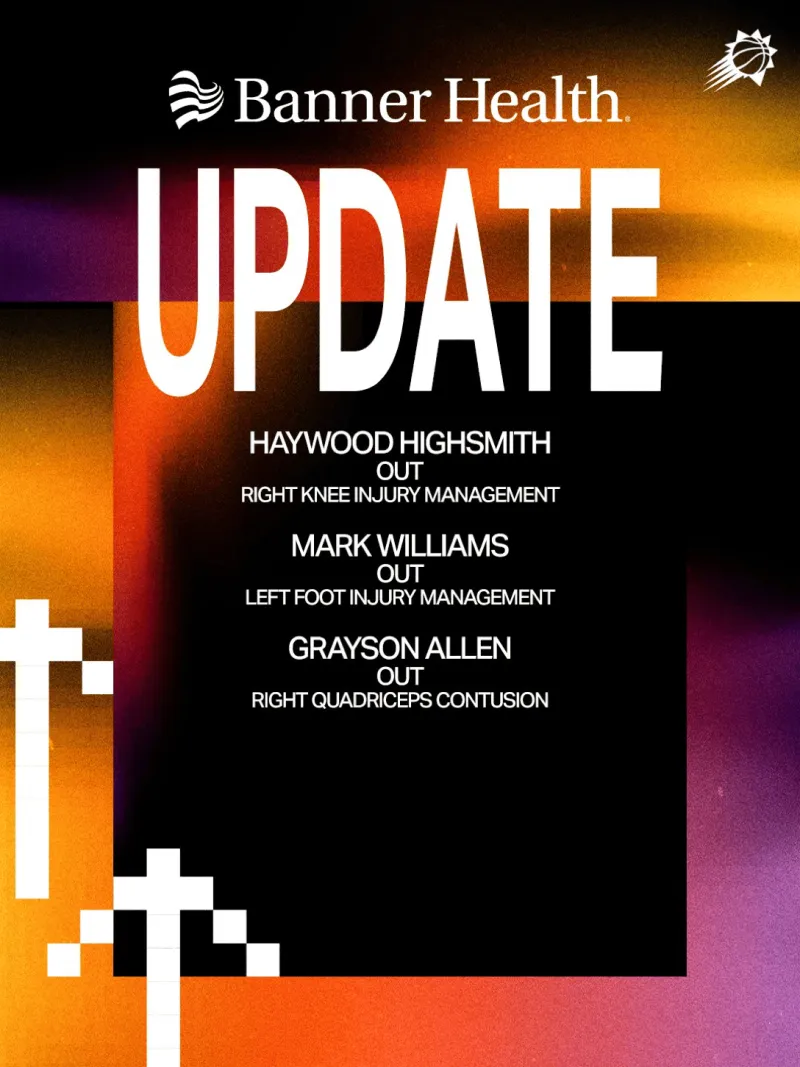 太阳官方更新了伤病报告: